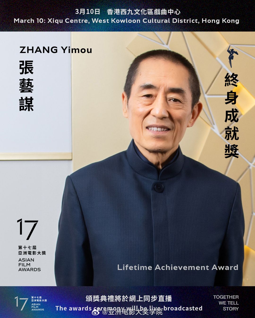 第17届亚洲电影大奖颁奖典礼将于3月10日在香港西九文化区戏曲中心举行。大会7日宣布,将最高荣誉的“终身成就奖”颁予中国内地导演张艺谋。