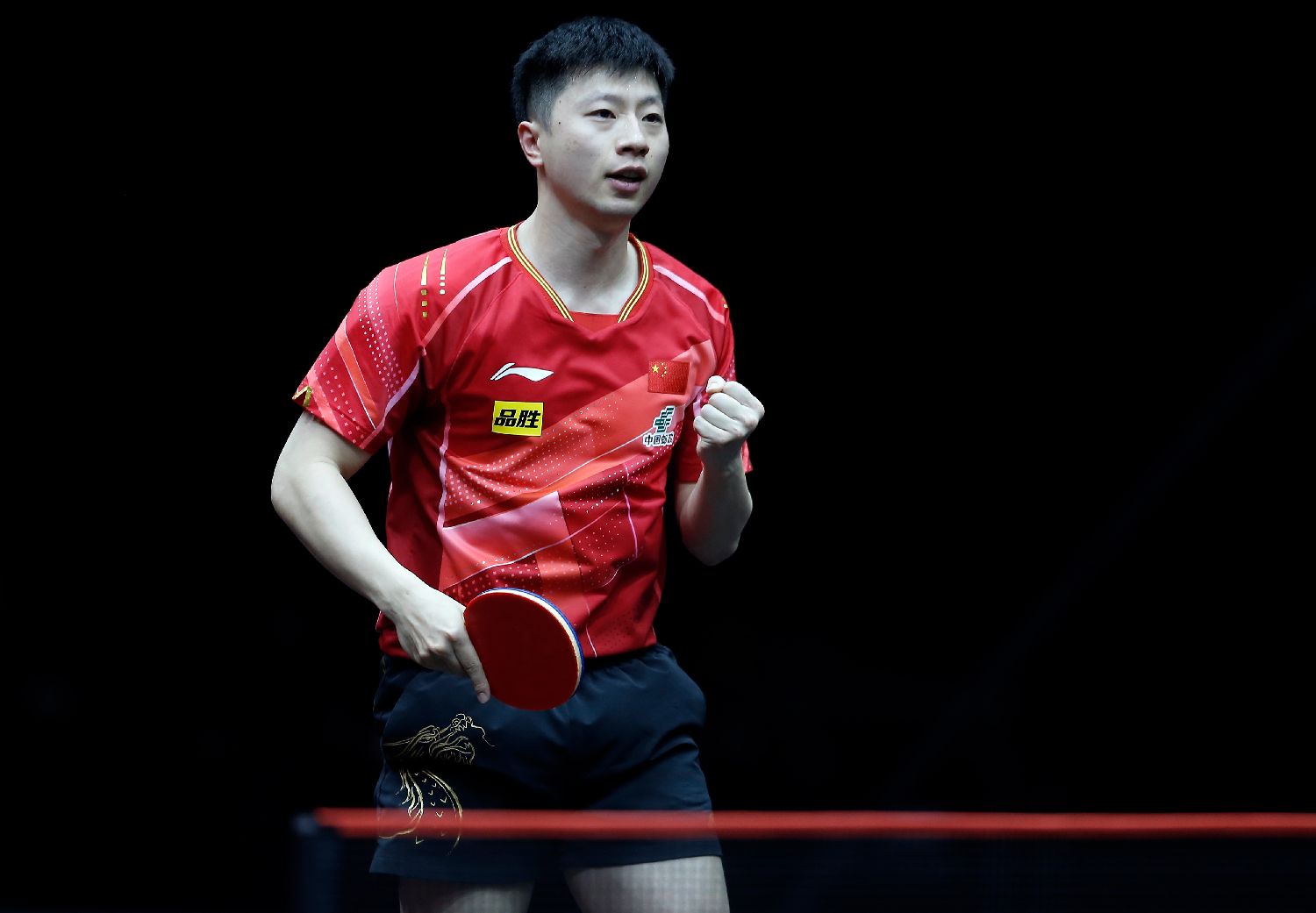 1月3日,马龙在比赛中庆祝得分。(图/新华社)
