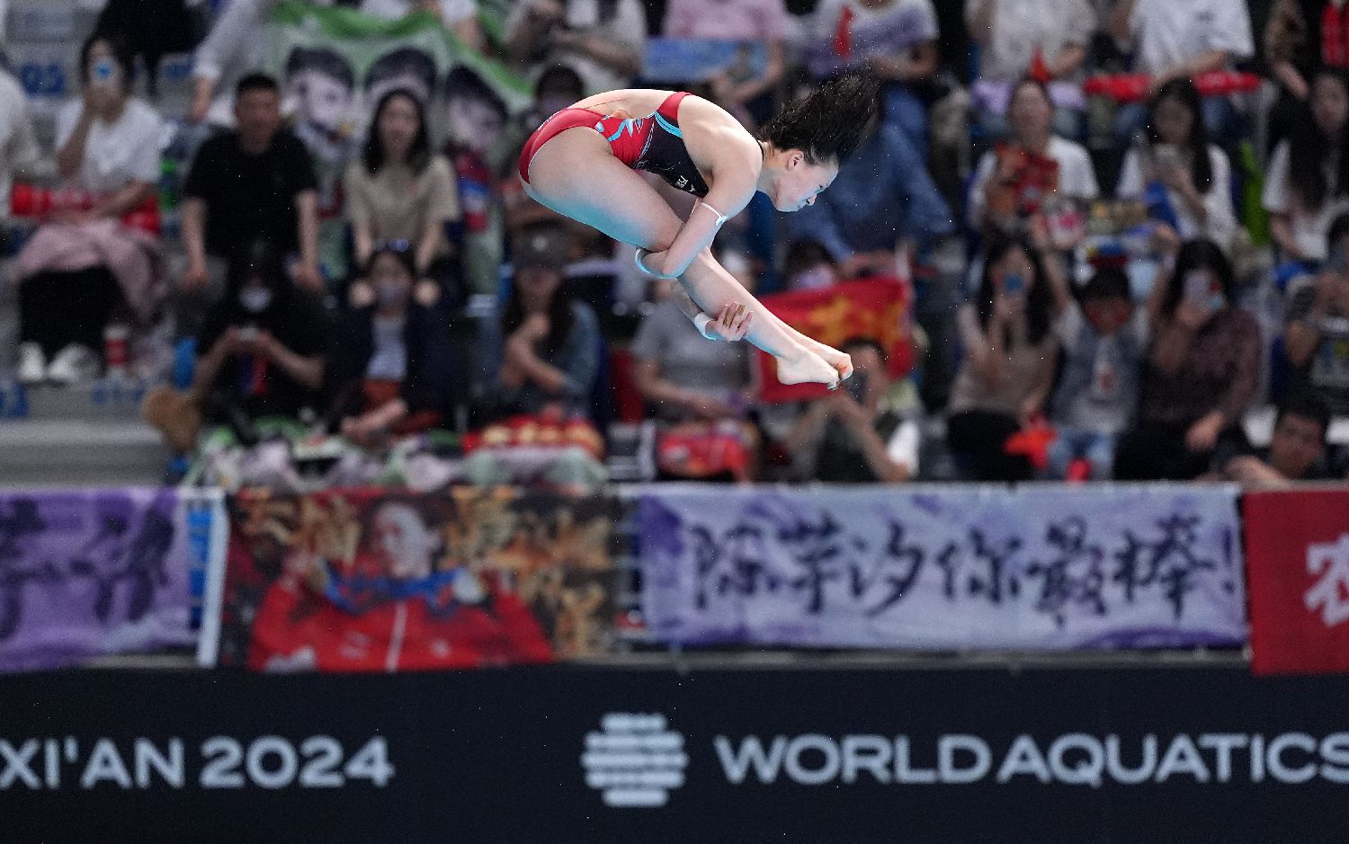起跳、腾空、入水……伴随着陕西西安奥体中心游泳跳水馆内观众的欢呼与掌声,中国选手陈芋汐击败队友全红婵,将2024跳水世界杯总决赛女子10米台的金牌收入囊中,而后者的个人金牌“大满贯”也还要再等等。