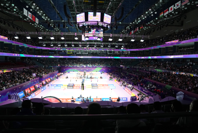 29日,成都2024汤尤杯比赛现场。(图/中新社)