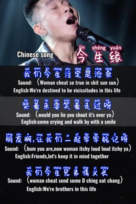 后来,他们不满足于仅仅只是对口型了,要“我手写我意,我嘴唱我心”,还出教程,用相近发音的英文来标注歌词。
