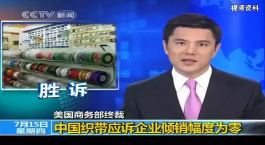 2009年,美国对中国纺织品发起所谓“双反”调查。作为2008年和2009年对美织带出口额最大的公司,“姚明织带”也在名单之上,还被选为强制性应诉反倾销调查企业。面对高昂的成本,“姚明织带”坚持应诉,并获得“双反”零税率的初裁。这也是中国企业反倾销调查的一次胜利。
