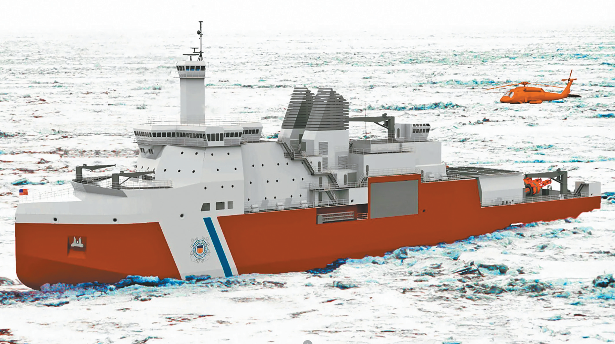 尽管早在6年前,美国海岸警卫队就宣布将建造新一批隶属“极地安全舰”项目的3艘重型破冰船,但由于美国造船业的衰退以及相关技术的缺失,第一艘直到去年12月才正式开工。报道称,根据美国国家科学院国家研究委员会的一份报告,重型破冰船通常“被定义为具有6英尺破冰能力的船只,以3节的速度连续破冰,并且可以在至少20英尺的冰层中倒退和撞击”。“极地安全舰”首舰被命名为“极地哨兵”号,耗资超过11.5亿美元,计划采用柴电推进系统,长140米,宽28米,满载排水量2.3万吨,可搭载约186名船员,破冰厚度达1.8至2.4米,续航时间约90天。此外,该船还设有可搭载大型直升机的飞行甲板。
