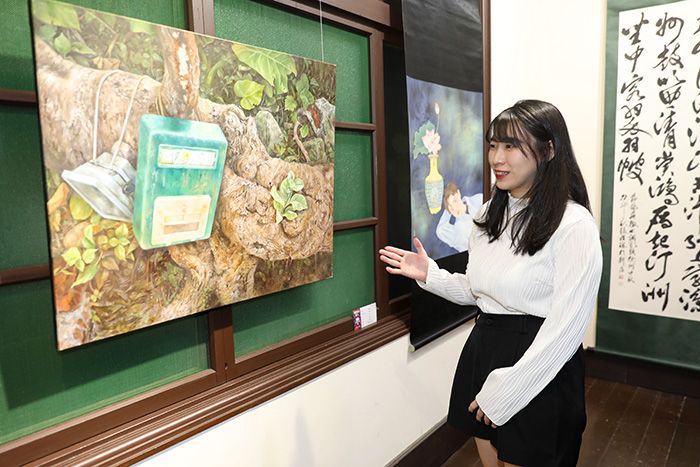 2024年10月28日,“龙的传人”书画艺术交流展在位于台北的大同大学开幕,展出两岸院校师生等创作的书画作品100件。图为展览现场。 (图/中新社)
