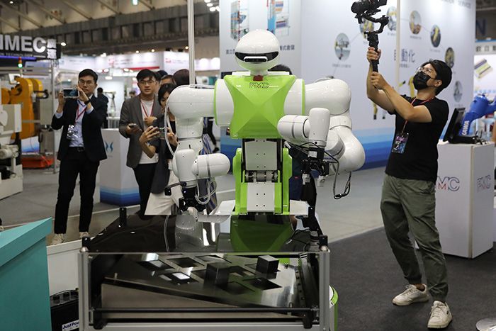 2024年8月21日,台湾机器人与智慧自动化展、台北国际自动化工业大展等九个展览在台北南港展览馆同时开幕,共有1200家厂商参展,展位4500个,均为历年新高。(图/中新社)