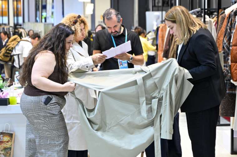 11月1日,境外采购商在广交会男女装展区挑选产品。(图/中新社)
