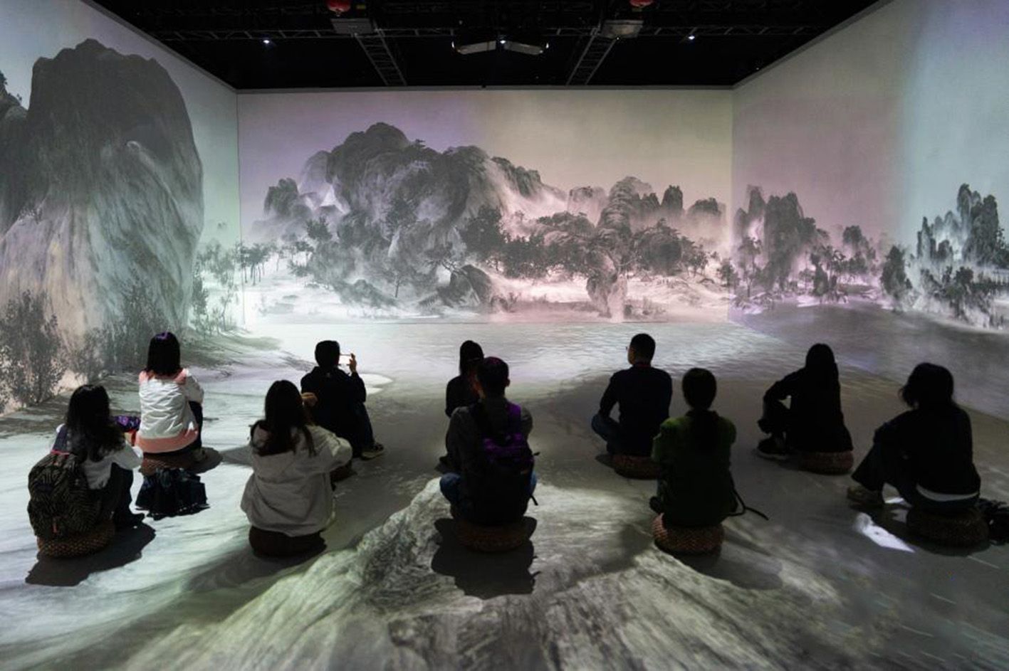 11月6日,观众观看“中国历代绘画大系”的光影展示。(中新社)