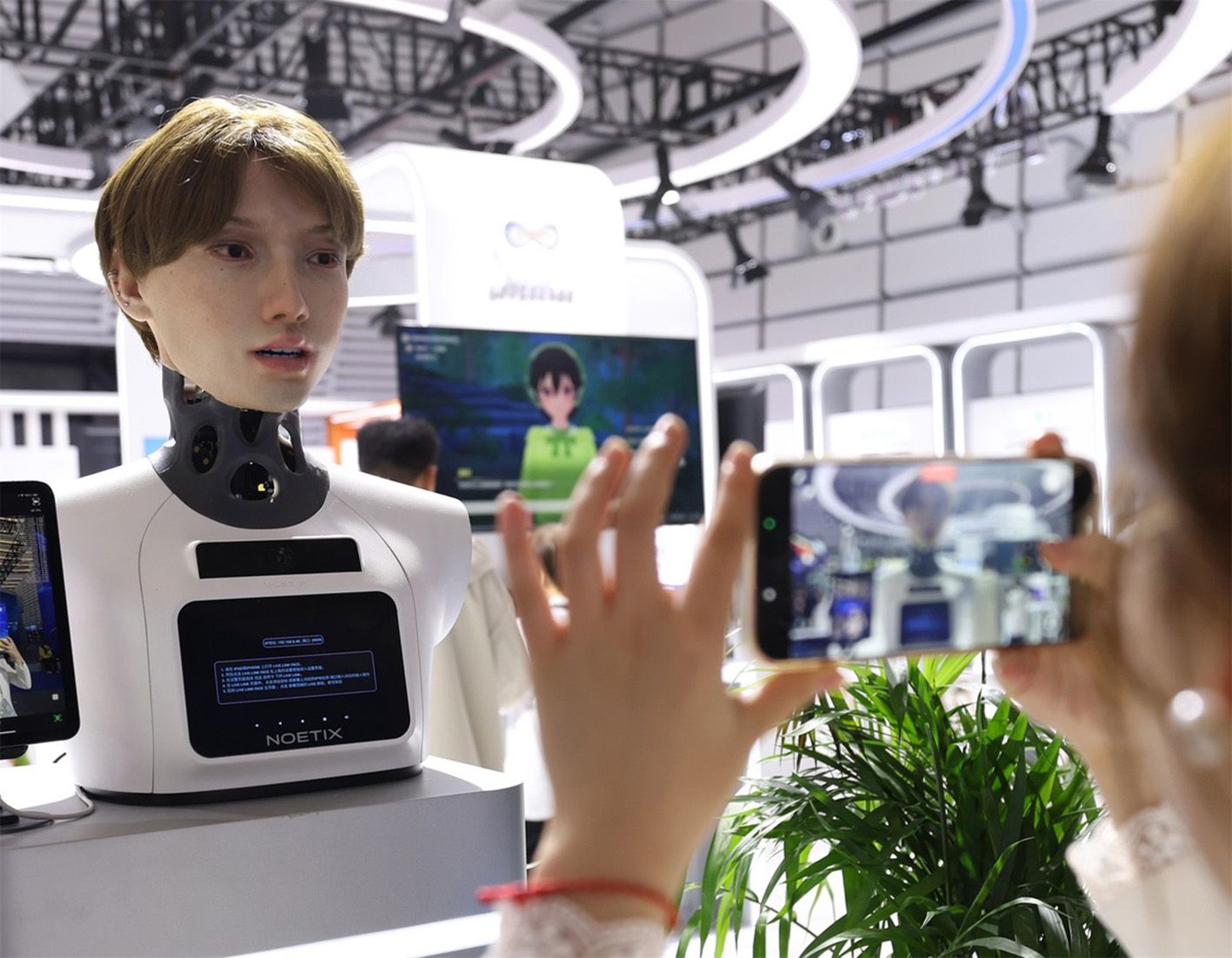 11月6日,观众在2025年世界互联网大会“互联网之光”博览会现场参观拍照。(新华社)