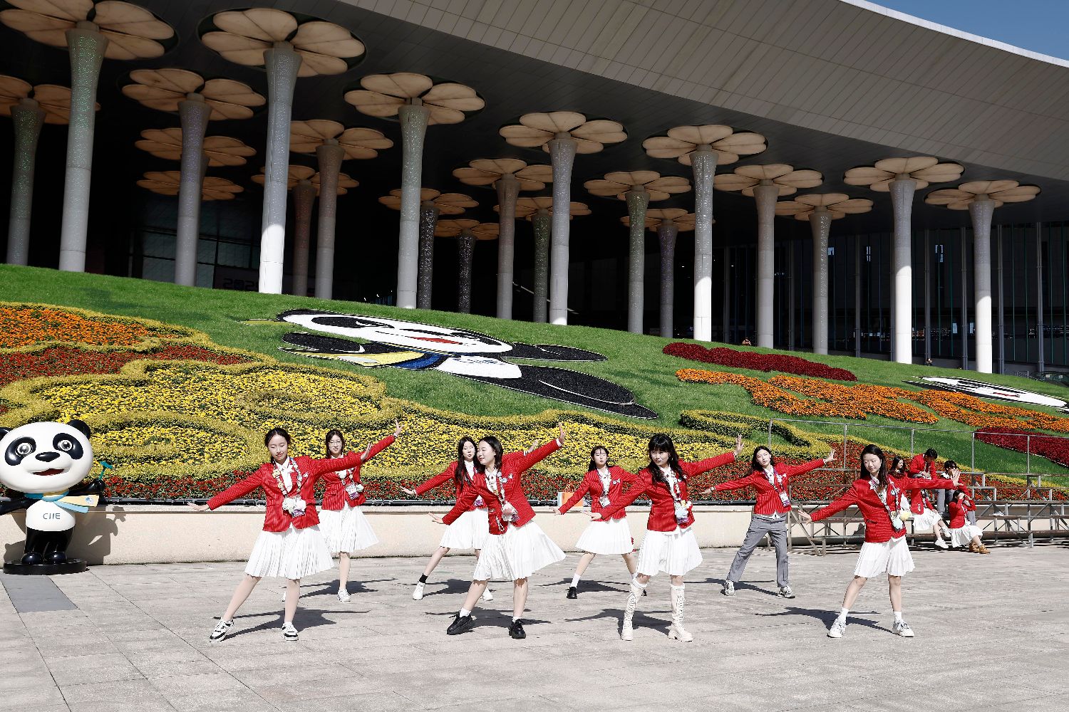 图为11月10日,志愿者在国家会展中心(上海)南广场跳舞。(中新社)