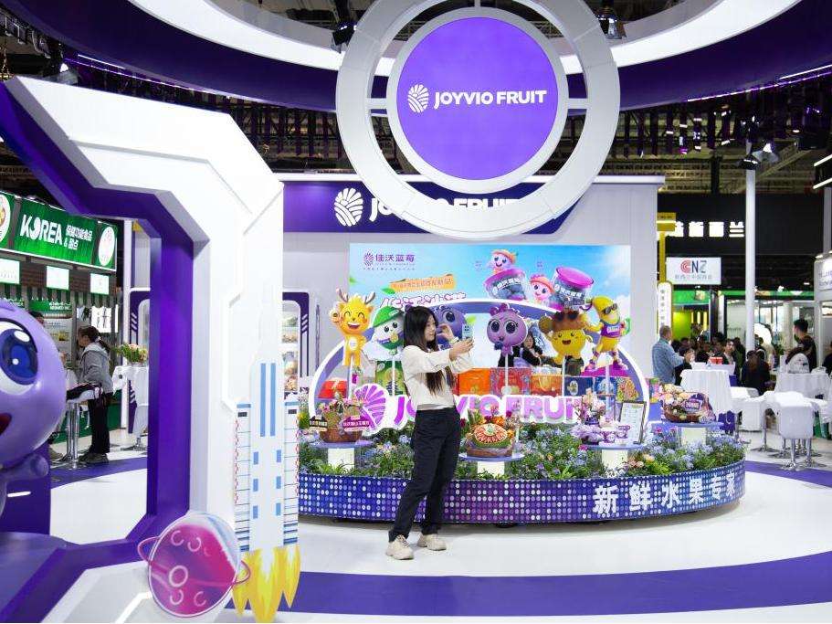 图为进博会现场某水果品牌带来多款全球首发。(北京央广网)