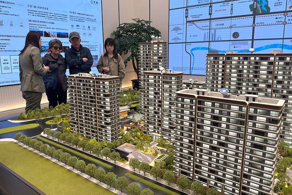 中国国家统计局11月14日发布的数据显示,2025年10月份,70个大中城市中,各线城市商品住宅销售价格环比和同比均下降。资料图为10月11日,民众在北京一售楼处了解楼盘信息。(图/中新社)