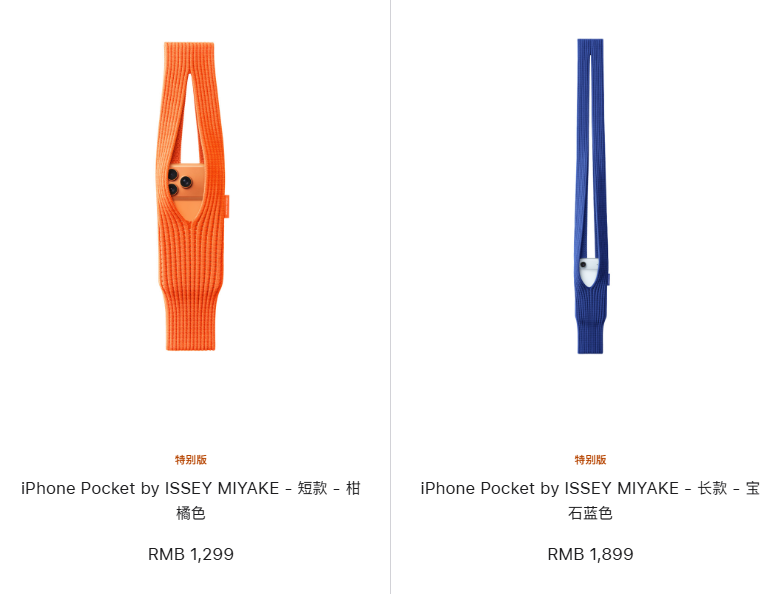 苹果近日在官网上线了与知名时尚品牌三宅一生共同推出的特别版配件iPhone Pocket,用于放置苹果手机。这款配件包含长短两种款式,短款有8种颜色,由于长得酷似袜子,被网民调侃为“针织长筒袜”。其价格更是引发热议,短款售价1299元(人民币,下同),长款售价1899元。