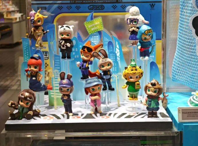 《疯狂动物城2》的商业爆发并未局限于银幕之内。据不完全统计,在上映前的近半年时间里,与《疯狂动物城2》联名的品牌就接近60个,涵盖潮玩、卡牌、服饰、零食、电商、汽车、航空等多个赛道。竞争最激烈的当属潮玩赛道,包括泡泡玛特、名创优品在内的16家公司都推出了相关产品。