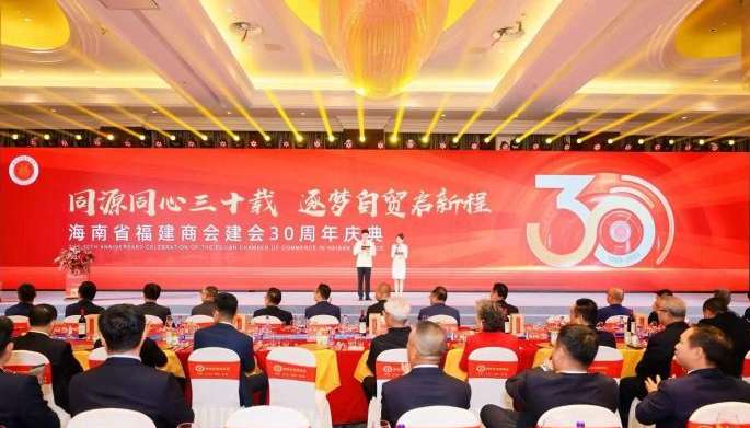 海南省福建商会建会30周年庆典当天在海口举行,回顾商会三十年奋斗历程,展望海南自贸港全岛封关后的发展新机遇。