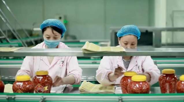 图为鸡泽县辣椒加工企业工人正在给罐装好的剁椒贴标签。(图/中新社微信公众号)