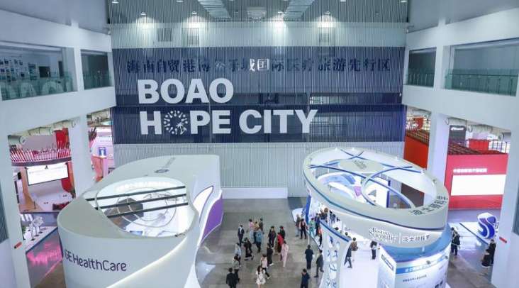 资料图:海南博鳌“永不落幕”国际创新药械展内部。(图/新华社)