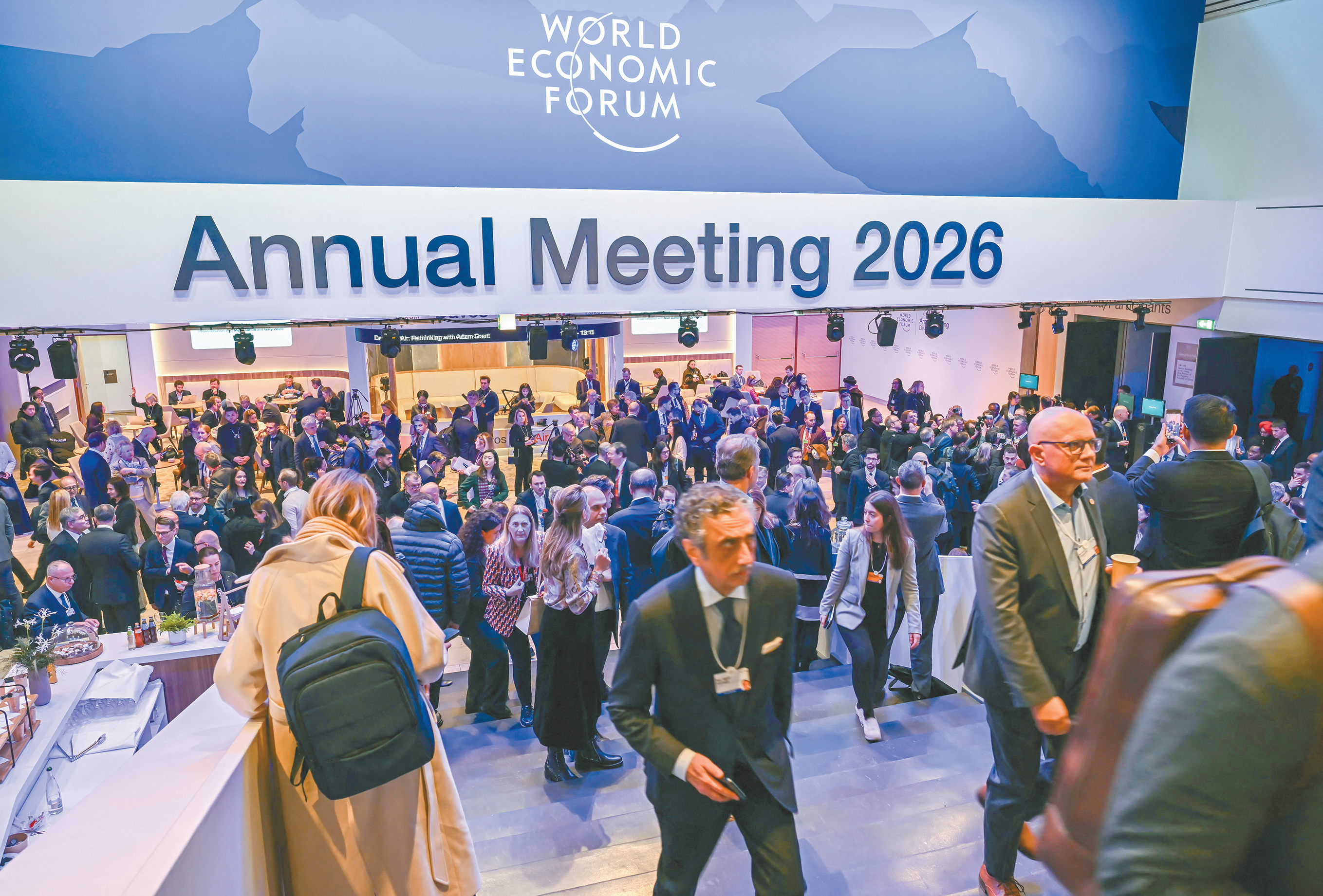 1月19日至23日,世界经济论坛2026年年会在瑞士达沃斯举行。图为20日的年会主会场。(法新社)