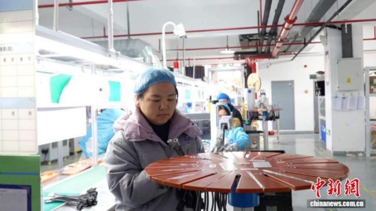 “过年期间订单十分紧急,而且厂里的福利待遇特别好,所以我们都愿意选择留在这里坚守岗位。最主要的也是想趁着这段时间多挣点钱。”河南籍企业技术员路漫娟介绍,她一天大概要经手5000多个线束。