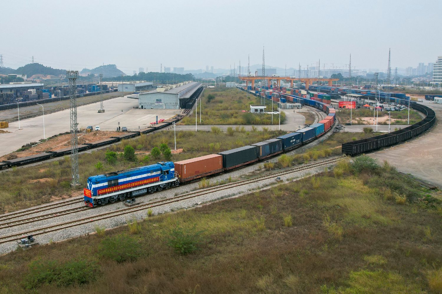 图为2026年粤港澳大湾区发出的首列中欧班列。(图/中新社)