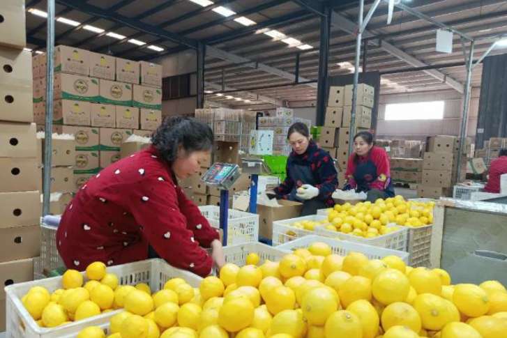 柠檬企业工人分拣鲜果。(图/中新社微信公众号)