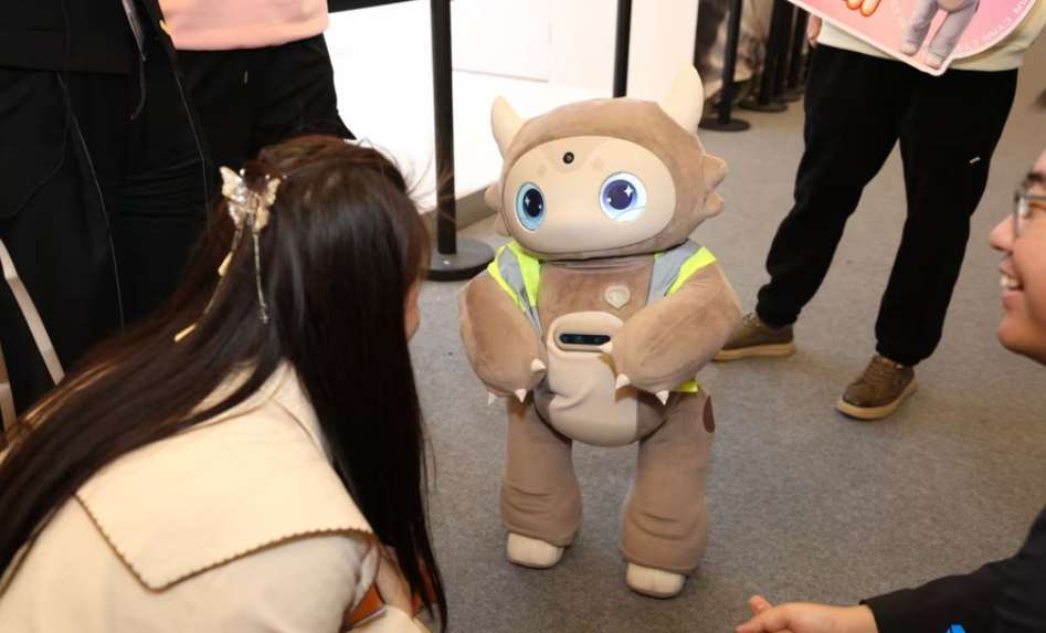 2026年中国家电及消费电子博览会(AWE2026) 期间,机器人Amoo与现场观众互动。(图/上海上观新闻)