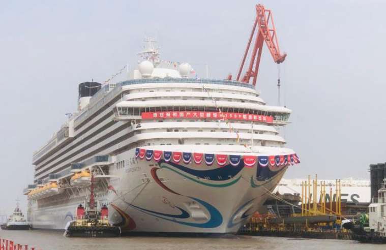 第二艘中国国产大型邮轮“爱达·花城号”在沪出坞