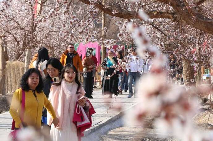 “新疆第一春·花开吐鲁番”2026吐鲁番杏花季系列文旅消费活动暨托克逊县第九届杏花季文旅促融合活动,时下正在南湖村举行,吸引四方游客前来。这个新疆“杏花村”已举办十多届杏花节,“以花为媒”解锁“杏”福产业。