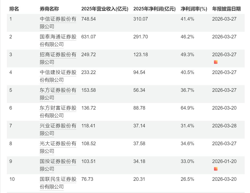 头部券商“成绩单”密集亮相:中信证券营收748亿领跑,4家净利超百亿