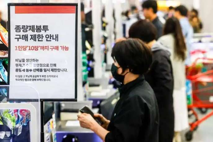 韩国实行垃圾处理计量收费,民众需购买专用垃圾袋。受中东局势影响,韩国国内关于原油供应可能中断的担忧加剧,而垃圾袋的主要原料聚乙烯是石油化工产品。民众担忧垃圾袋供应不足,开始大量采购,多地超市限购甚至断货。