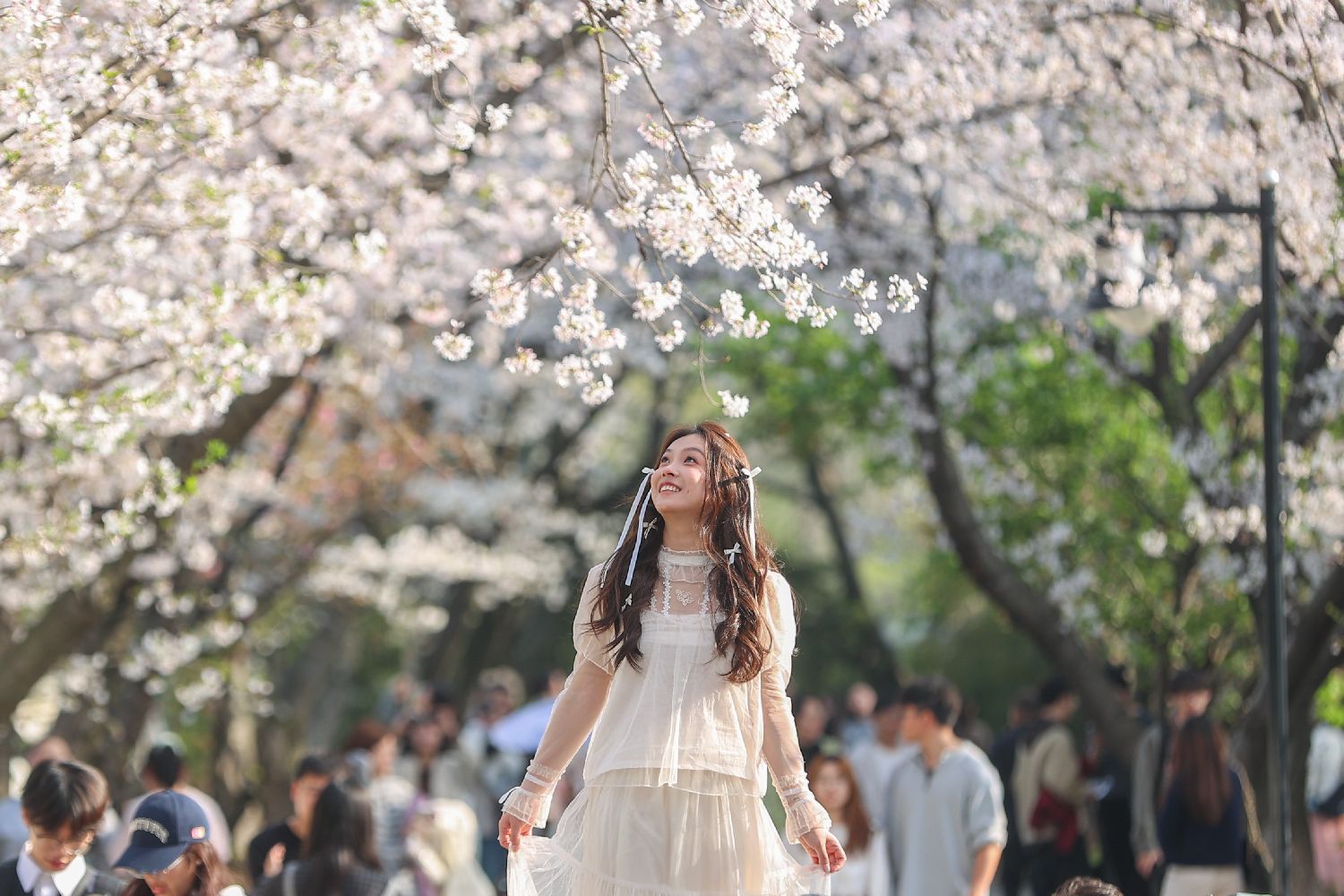 4月1日,江西南昌,游客在江西省林业科学院赏樱。(图/中新社)