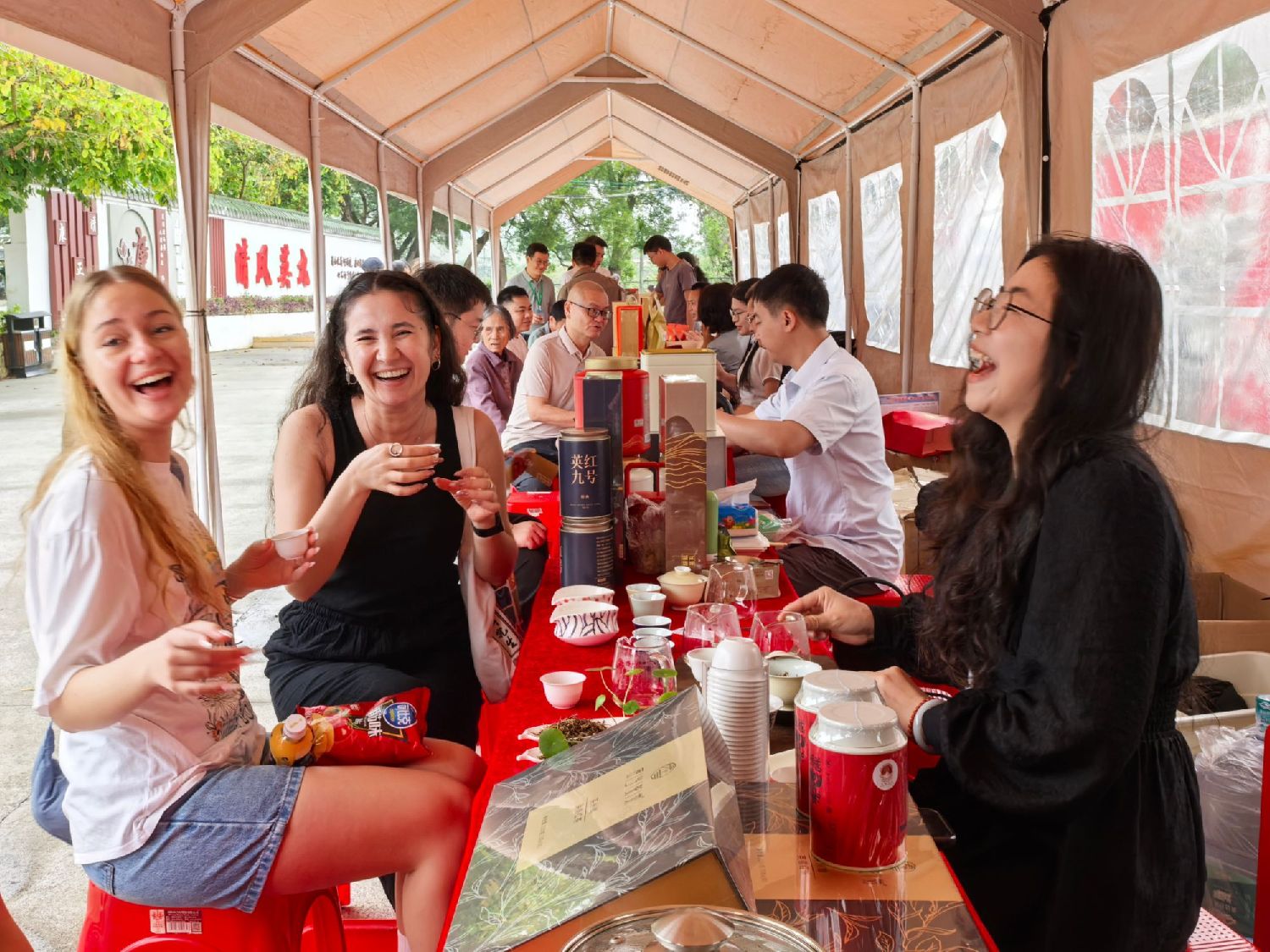 红旗茶厂自1978年起安置大量归国侨胞。近年来,红旗茶厂以工业风与国潮风场景为特色,融合传统茶文化、工业文化与归侨文化,打造“从茶厂到茶园”的沉浸式体验场景。该茶厂负责人彭友岚称,得益于中国对多国旅客实施的240小时过境免签政策,红旗茶厂接待的海外游客量日益增长。