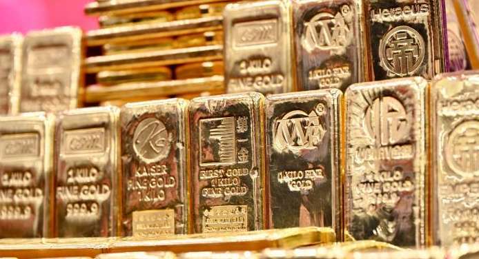 资料图:黄金金条。(图/中新社)