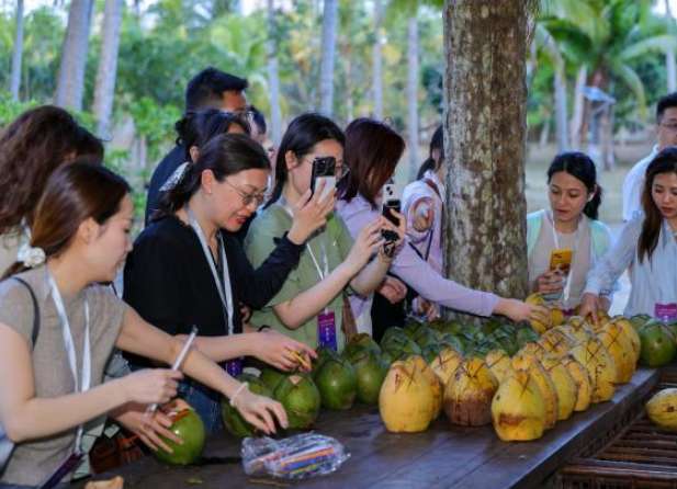4月14日,“开局之年看中国·开放自贸港”网络主题传播活动走进文昌椰子大观园,海内外媒体人探访了这个被誉为“世界椰子博览,中国椰子之窗”的科研与文旅地标。(图/中新网)