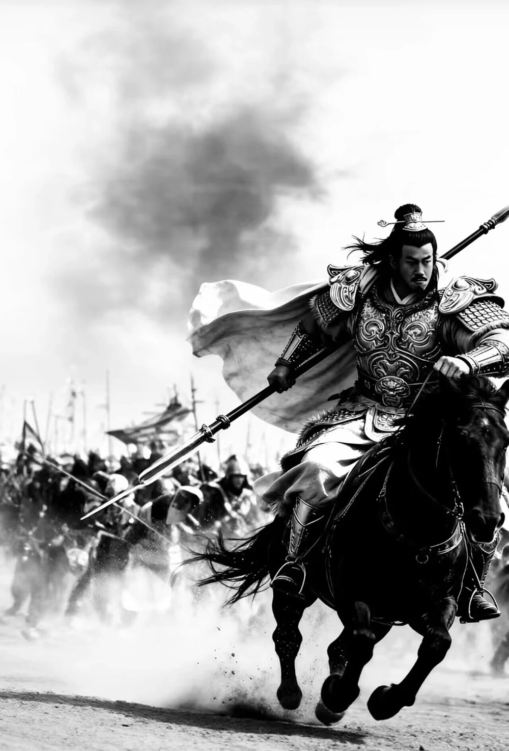 电视剧《楚汉传奇》中何润东饰演的项羽身穿战甲驰骋沙场。(图/微信公号“宿迁发布”)