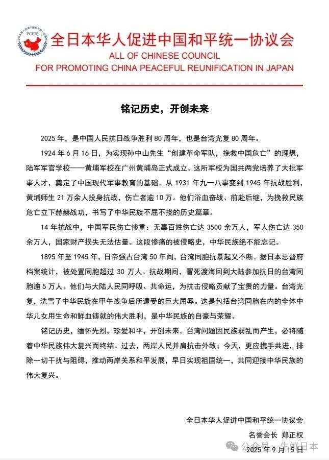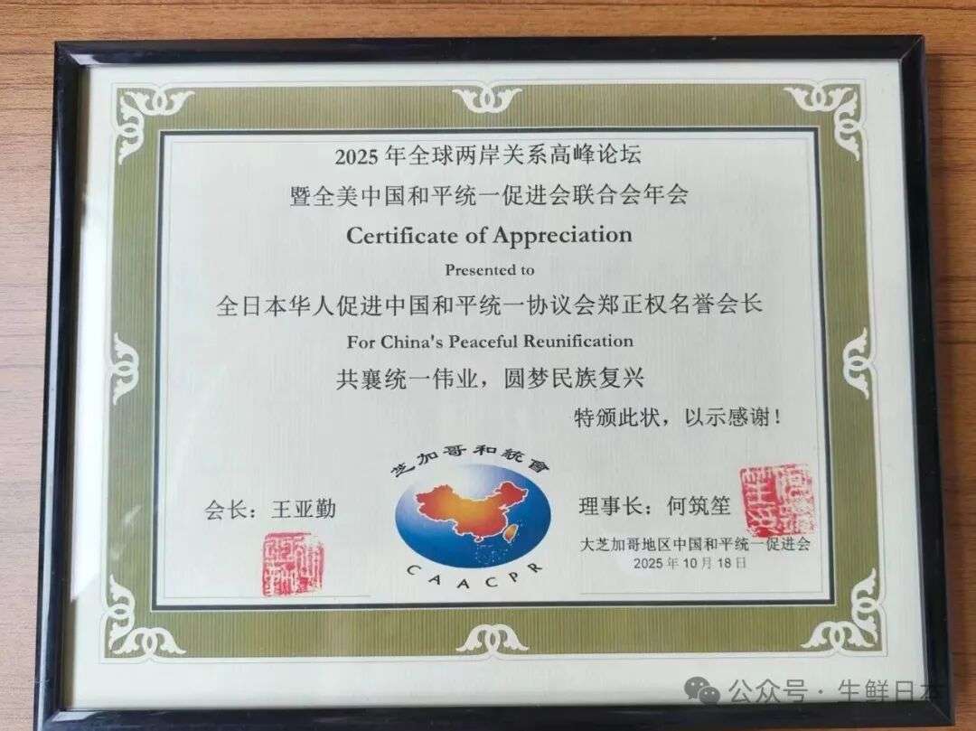 10月18日在芝加哥Hyatt Place宾馆,芝加哥和统会隆重举办2025年全球两岸关系高峰论坛暨全美中国和平统一促进会联合会年会。两岸三地、美国各州、全球各国的和统会的代表参加了大会。全日本华人促进中国和平统一协议会名誉会长郑正权出席了大会并致辞。