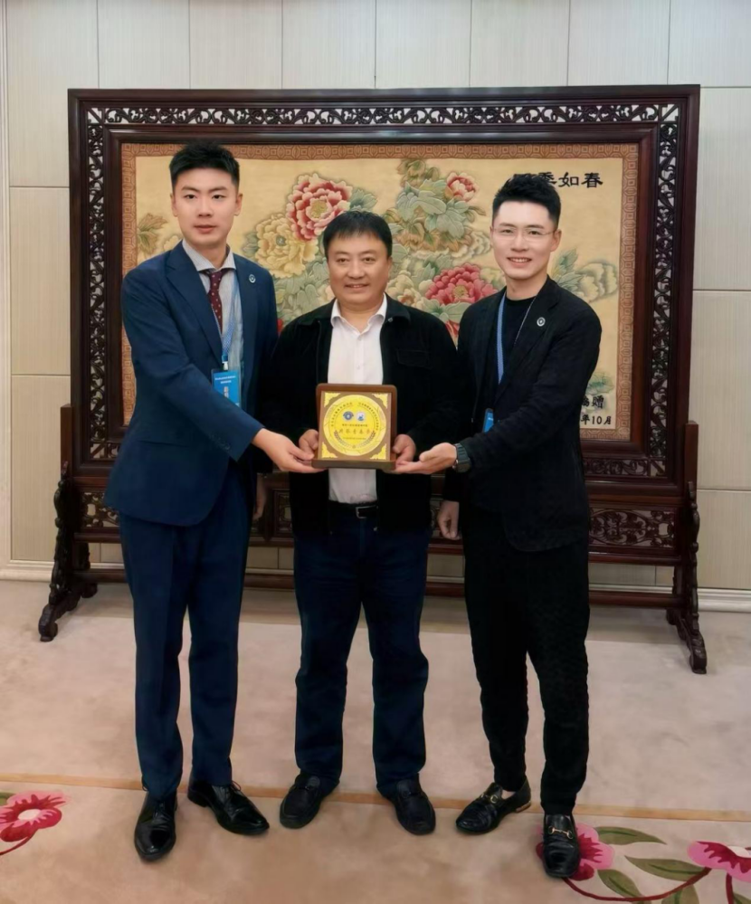 10月14日,在活动启动仪式召开前,冯尚伟会见了日本侨界青年联合代表团联合团长郭磊、刘竞炜,双方互赠纪念品并合影留念。