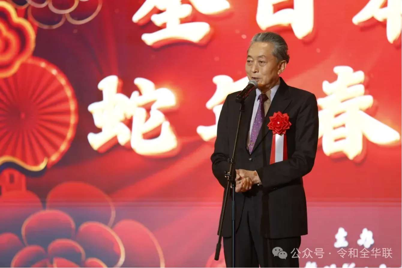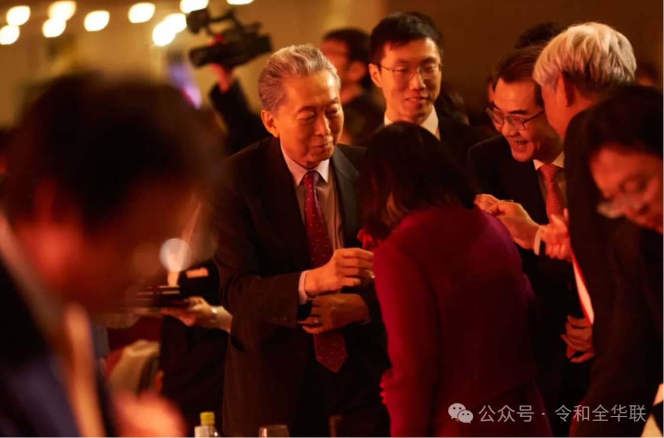 ▮2025年全华联春晚,现场嘉宾与日本前首相鸠山由纪夫交流。