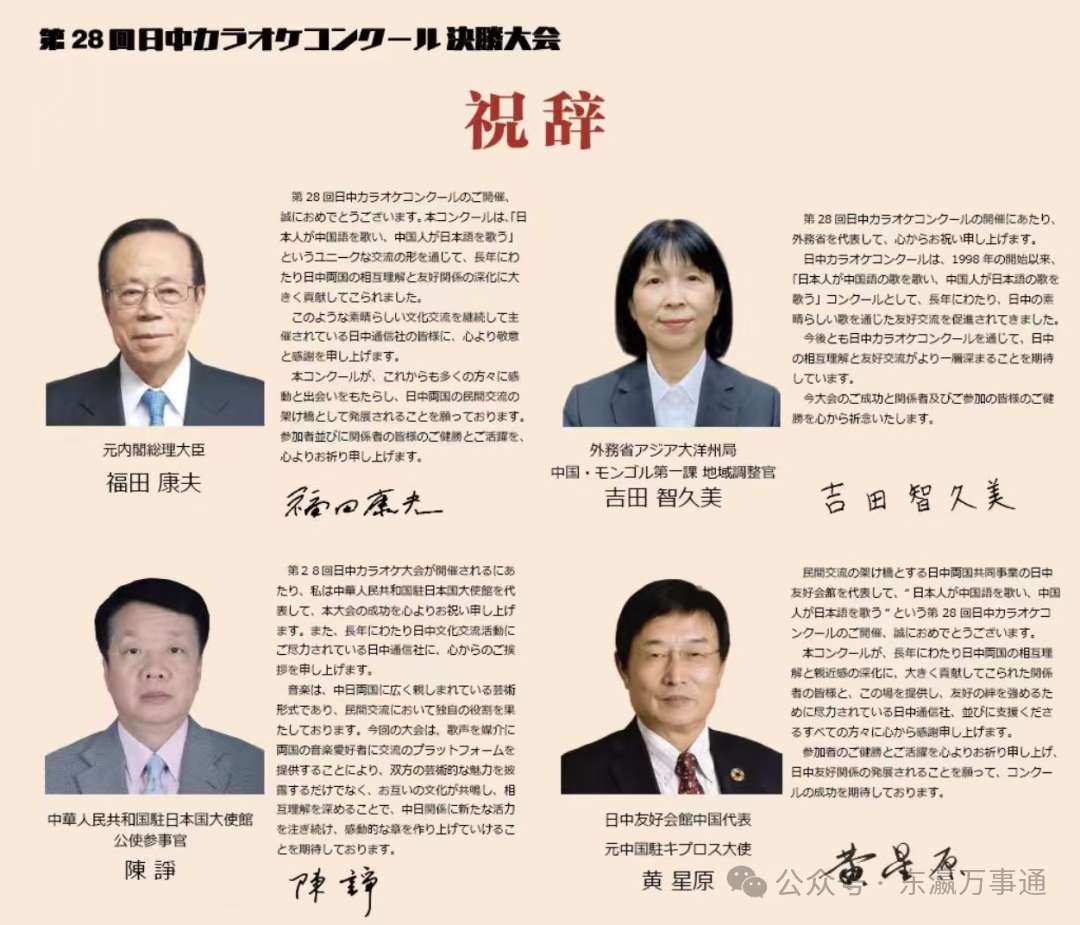 此外,日本前首相福田康夫亦发来贺词,充分肯定了赛事在促进中日文化交流与民间友好方面所发挥的重要作用。
