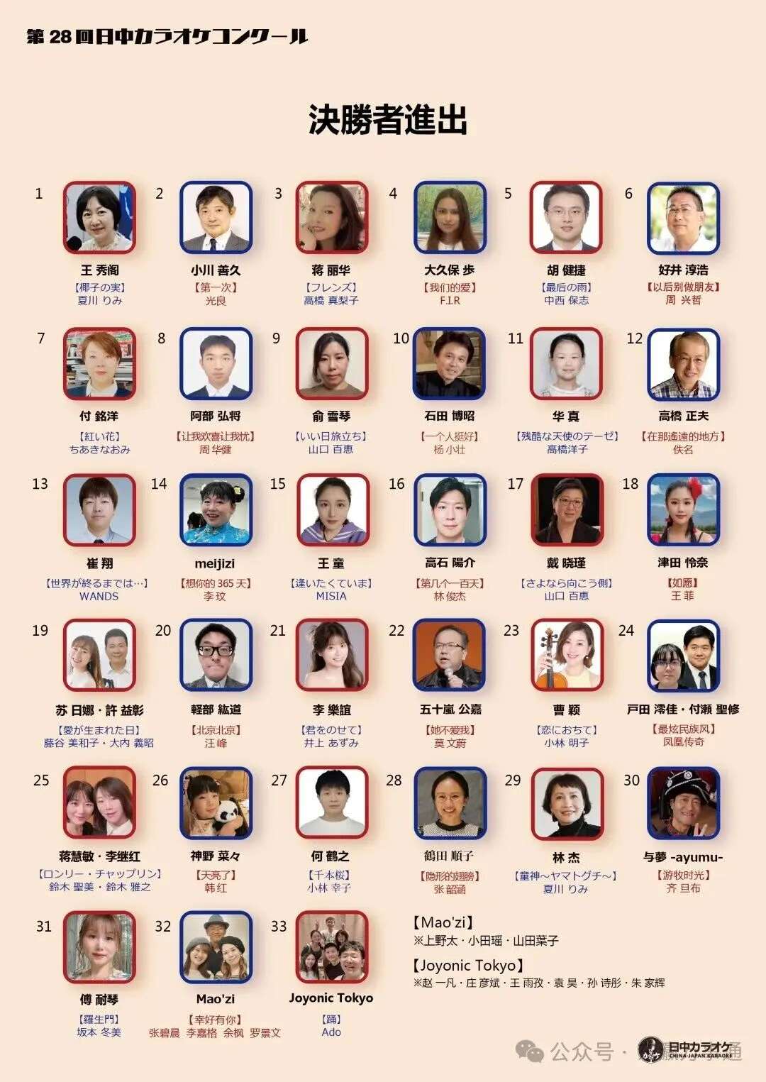 日本与中国的33组、共43名选手参赛。参赛者年龄从7岁至70岁不等,涵盖学生、主妇、公司职员、医生以及公务员等各界人士。选手们以“日本人唱中文、中国人唱日文”为主题展开比拼,通过音乐的语言互通与文化交融,展现出跨越国界的友谊与共鸣。非专业歌手的真挚歌声与热情表演,赢得观众阵阵掌声,现场气氛热烈而感人。