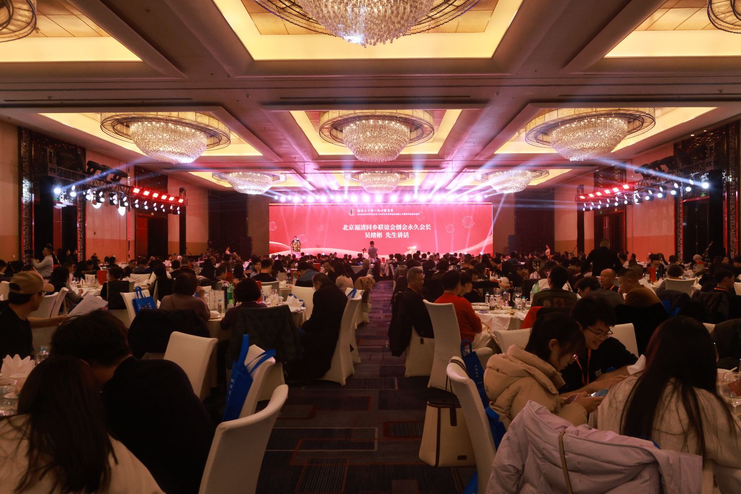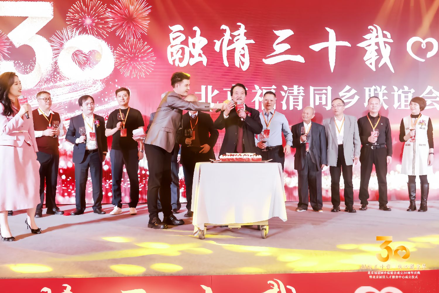 因这天是联谊会三十华诞;因一帮热爱家乡,富有爱心的联谊会领导30年的倾情付出;因年届“米寿”的吴绪彬会长以其博大的爱心为家乡、为乡亲无私付出;因一代又一代福清人的“敢拼敢赢,心系桑梓”的赤子之心而吸引了来自天南地北和北京四面八方的各界领导、嘉宾、乡亲纷至沓来,相聚在灯火辉煌的庆典大厅。满场布景气派非凡,满堂笑声飘逸四方,四百多的宾客和乡亲共祝联谊会三十华诞生日快乐!彰显联谊会的实力和海内外融籍企业家的鼎力相助,团结一心,众志成城,共赴前程。