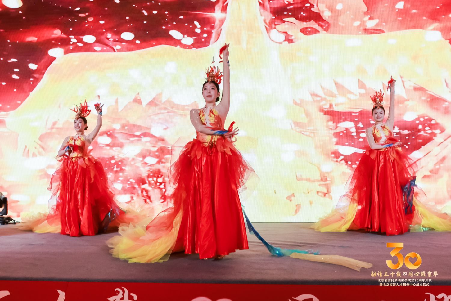 晚会的文艺节目有舞蹈《凤舞朝阳》、《忆梦阑珊》、《起舞盛世》,舞姿曼妙,风起云动,撩人心弦。各种器乐合奏,昂扬清快,悦耳动听。专业歌唱家演唱的歌曲《珊瑚颂》、《想你的夜》,嗓音甜润,歌声悠扬。特别是乡亲音乐人林东自创的《去福清咖溜》乡味浓郁,引发人们的思乡之情。整个文艺晚会高潮迭起,精彩纷呈,引发全场掌声雷动。最后以全场高唱《难忘今宵》结束了这场引起广泛社会影响,博得一致好评的30周年庆典。
