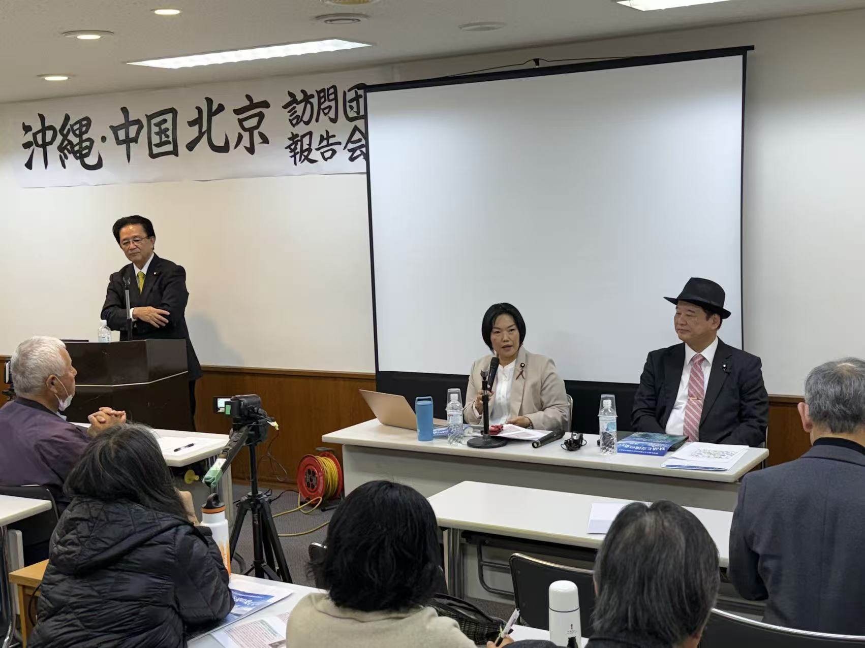 2026年1月11日,“冲绳·中国北京访问团报告会”在冲绳县那霸市久米的冲绳县青年会馆举行。此次报告会由去年12月21日至24日访问北京的参议院会派“冲绳之风”主办,参议院议员伊波洋一、参议院议员高良沙哉以及前参议院议员高良铁美三人登台发言。在日中关系持续紧张的背景下,此次访中旨在向中方直接传达冲绳县民祈愿和平与地区稳定的心声。众多对此关注的县民来到现场旁听。
