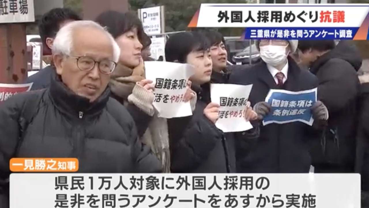 三重县知事一见胜之此前表示,为防止机密信息泄露至海外,正在考虑停止招聘外籍职员。为此,三重县计划从明天起以1万名县民为对象,开展一项名为“关于是否支持招聘外国人的意向调查”的问卷活动。