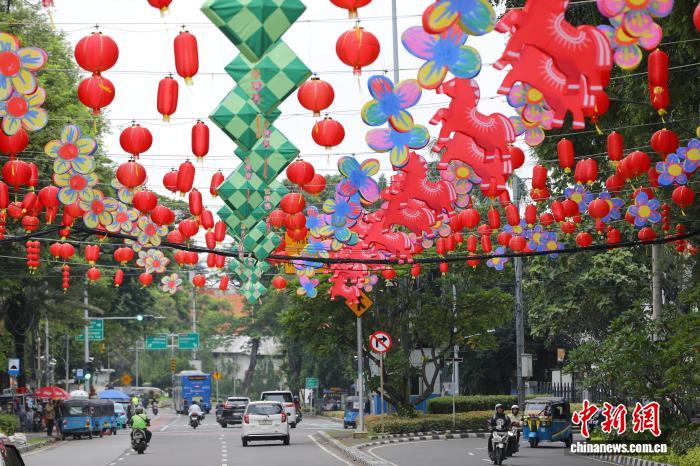 2月16日,雅加达市区街头张灯结彩,洋溢着春节气息。中新社记者 李志全 摄