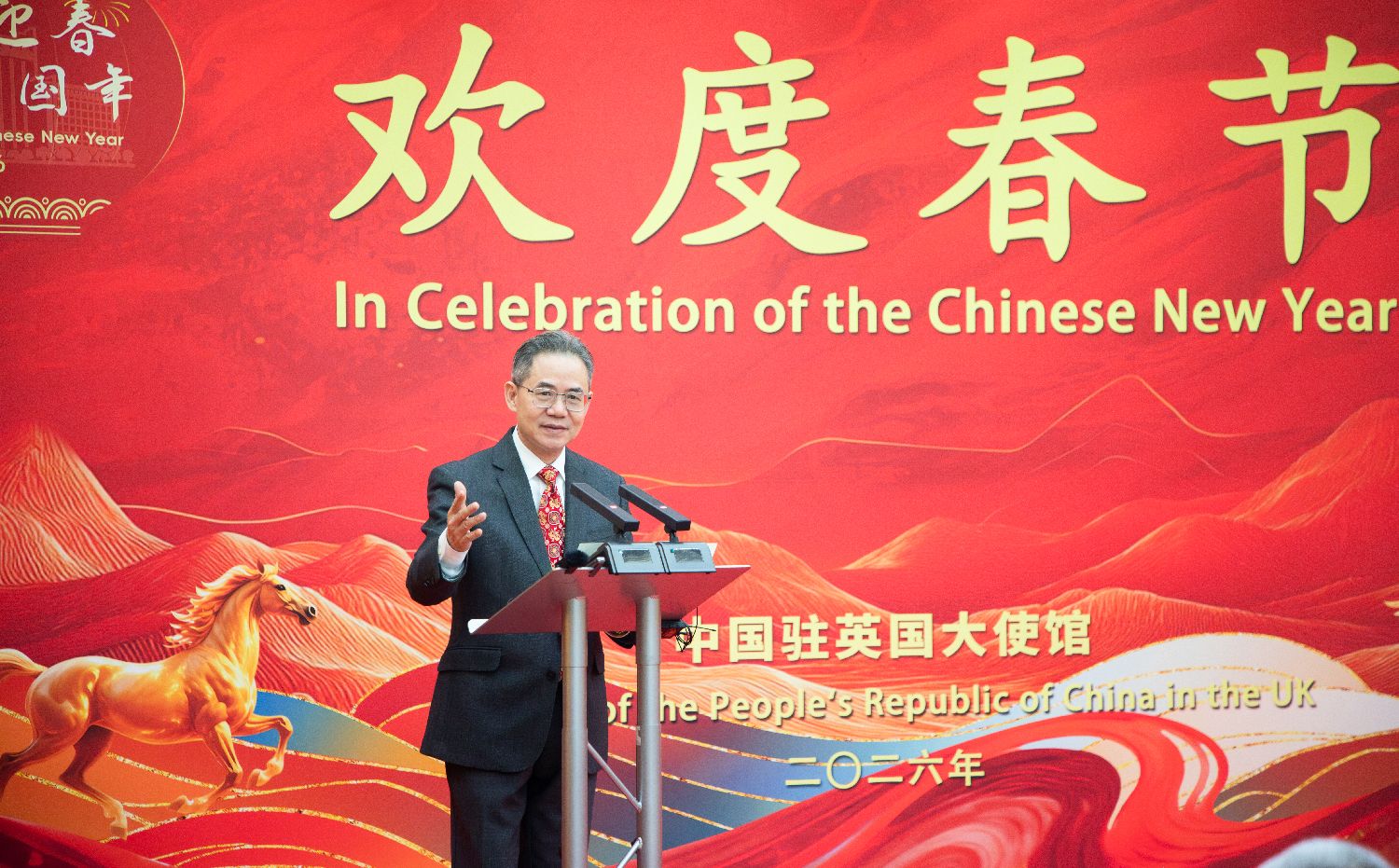 在新春招待会讲话中,中国驻英国大使郑泽光回顾了浙江舟山渔民营救“里斯本丸”号船英军战俘的感人事迹,并向来宾致以马年新春祝福。他表示,中英应该加强合作,坚定维护以联合国为核心的国际体系,维护二战胜利成果和战后国际秩序。希望两国各界人士铭记历史,传承友谊,加强交往,促进合作,为推动中英关系行稳致远作出新的贡献。