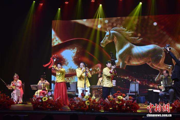 当地时间3月8日晚间,巴西圣保罗,巴西中华妇女联合会举行20周年庆典现场,巴西中华妇女联合会会长郭淑玲(左一)等中巴音乐人组成的《春江乐团》演出剧照。记者林春茵摄