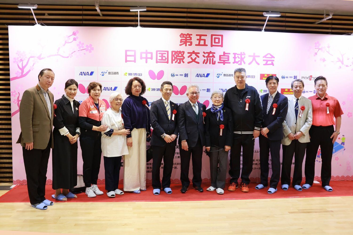 日本乒乓球协会会长河田正也、副会长星野一郎与中国国家队原总教练李隼、前世界冠军松崎君代、中国乒坛名宿庄则栋的遗孀佐佐木敦子等中日两国乒乓大咖齐聚东京,共同为这一民间体育盛事喝彩,续写“小球转动大球”的佳话。