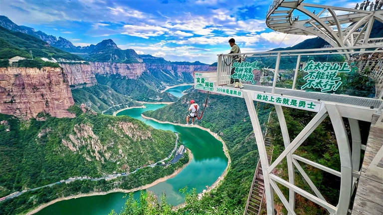游客在宝泉旅游区体验“窝囊蹦极”。冯汉斌摄