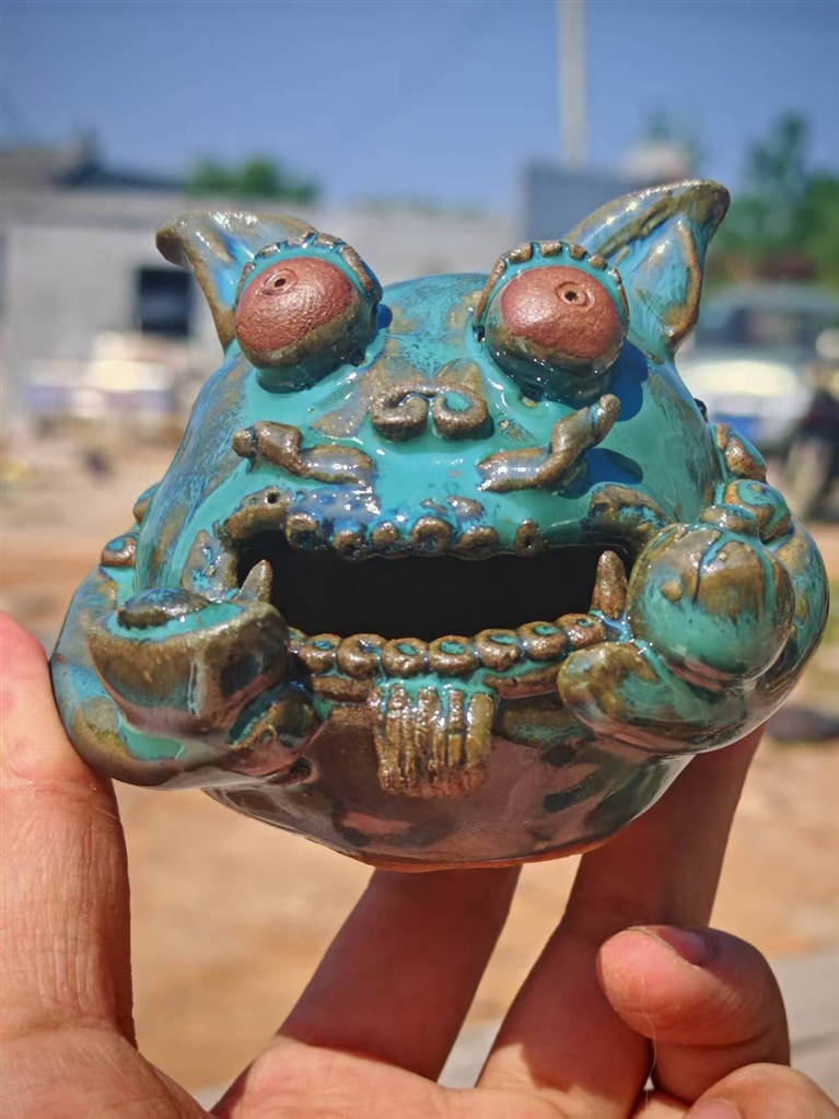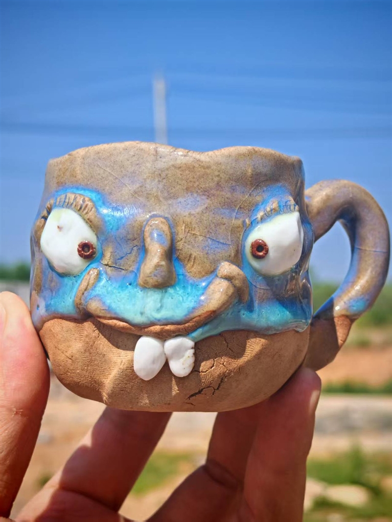 禹州神垕古镇,“小淘器”瓷器文创店虽在老街的最后一间,但游客络绎不绝。店主王荟芳指导着游客“玩泥巴”,揉泥、拉坯、上釉,钧瓷泥在手中慢慢成形,创作出一批香插、茶杯、冰箱贴等小物件,丑萌有趣,独一无二。