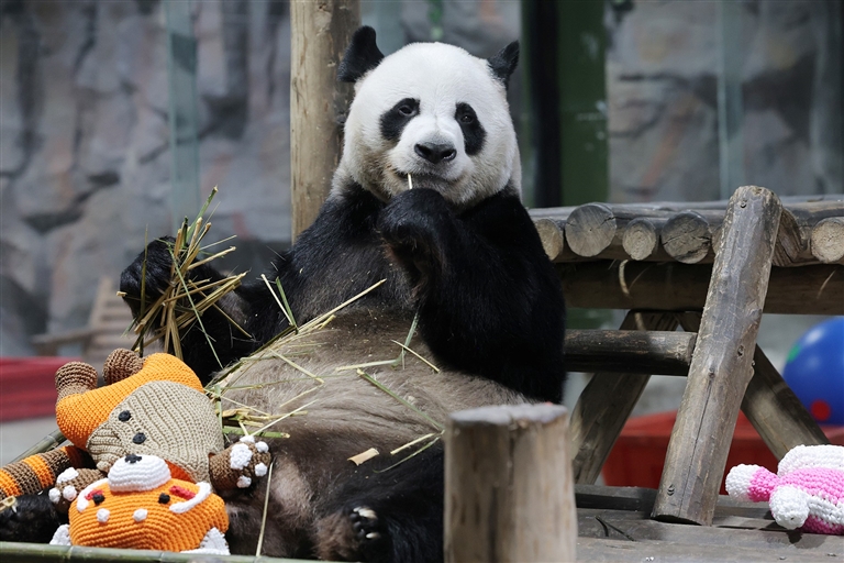 在洛阳栾川竹海野生动物园,这种情绪补给来得更安静。熊猫馆里,明星大熊猫“灵岩”抱着竹笋坐在木架上,爪子慢悠悠地剥着笋壳。长沙大学生李扬举着手机录了5分钟视频,屏幕里只有熊猫咀嚼竹笋的咔嚓咔嚓声。“什么都不用想,就这么看着它吃竹子,感觉整个人都被治愈了。”李扬说。